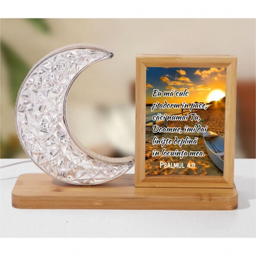 Lampa semiluna cu rama foto, Eu ma culc si adorm in pace!