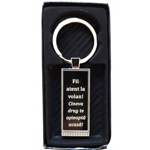 Materialul brelocului si placuta gravata cu efect de oglinda, fac din acesta un breloc de lux!