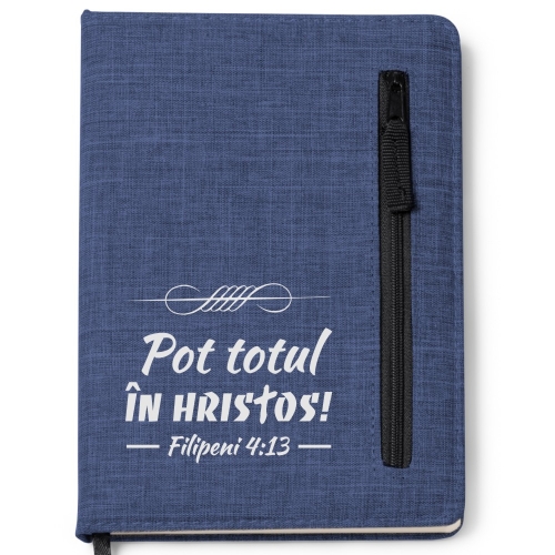 Notepad bleumarin A5 personalizat, Pot totul in Hristos!* Notepad bleumarin A5 personalizat, Pot totul in Hristos!*