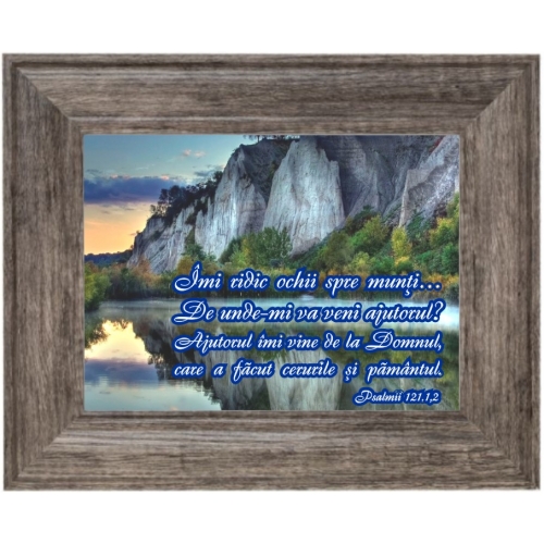 TABLOU 27x22 cm, Imi ridic ochii spre munti..
